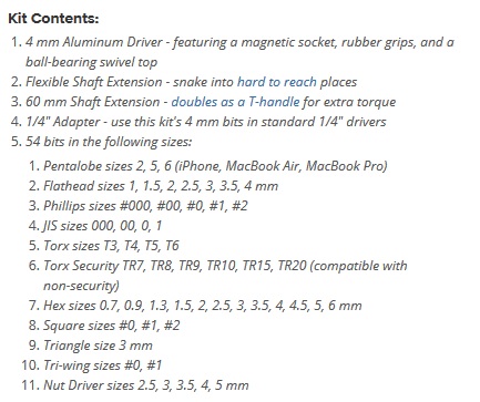 ต้องการขาย ifixit 54bit driver kit สำหรับเอาไว้ไขหัวน็อตต่างๆที่แปลกๆ ชุดเดียวนี่ครอบคลุม gadget ขนาดเล็กเกือบทั้งหมดแล้ว เหมาะสำหรับท่านที่ชอบซ่อม แงะ แกะ รื้อ พวก gadget ต่างๆเอง เป็นของมือสอง ไม่ค่อยได้ใช้ครับ ต้องการขาย 1200 บาท รวม ems