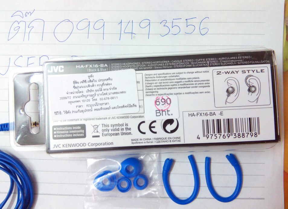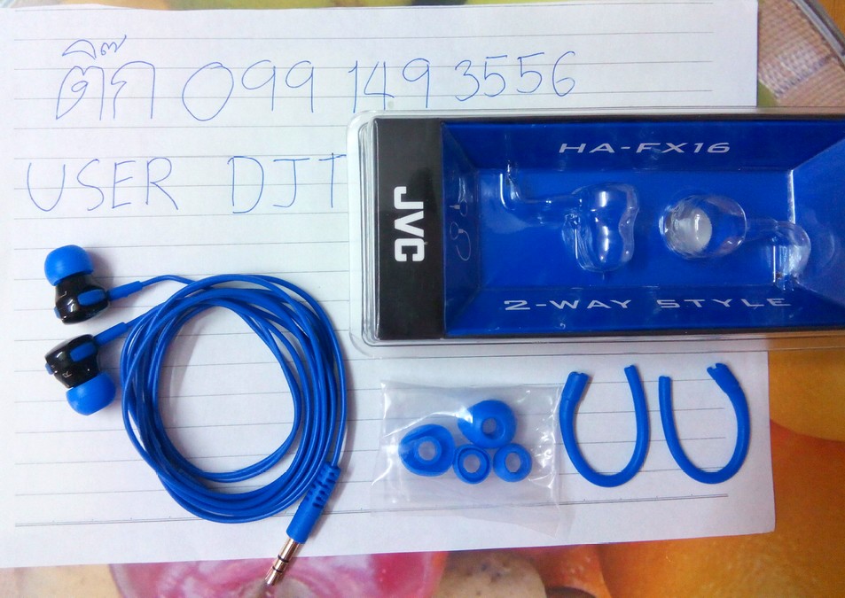 เป็นรุ่น JVC HA-FX16 สีน้ำเงิน-ดำ ซื้อวันที่ 29/10/57 ที่ร้าน LOFT