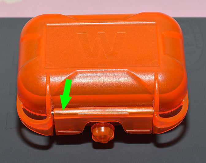 กล่องสีส้มที่ใส่หูฟังตรงตัว Lock ด้านหน้ามีลอยร้าวเล็กน้อย ลอยต่อด้านหลังก็ร้าว