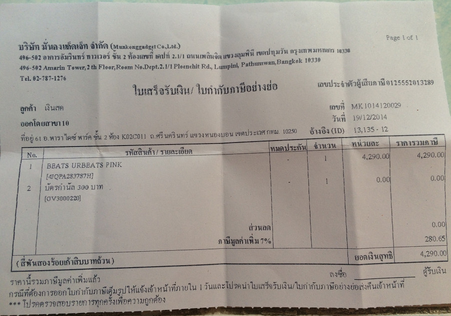 ใช้งานได้ปกติ ซื้อจากร้านมั่นคง วันที่ 19/12/14 ประกันเหลือถึง 19/12/15 กล่องใบเสร็จ ครบ ค่ะ