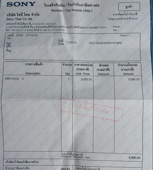 ซื้อจากศูนย์ SONY วันที่ 11/2/15 ประกัน1ปี
