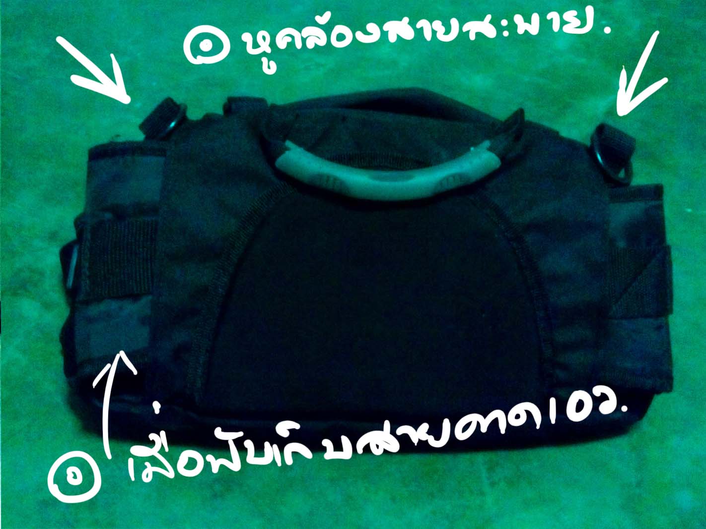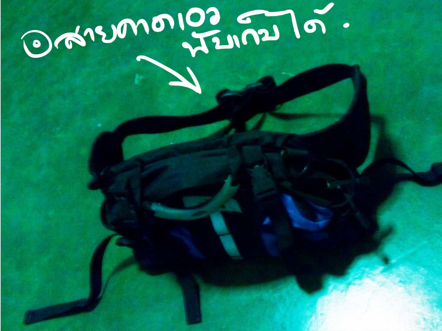 ตัวกระเป๋าสีน้ำเงินธรรมดานะครับแต่ในรูปถ่ายมันดูออกม่วงๆไปหน่อย น่าจะเพี้ยนตอนปรับความสว่างในรูป