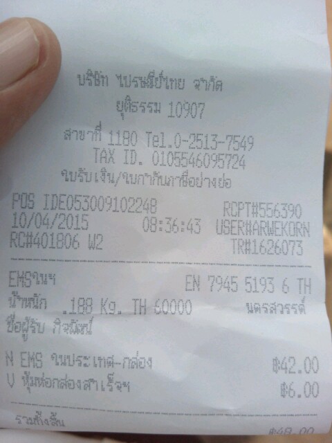 ems ไปรษณีย์บอกพรุ่งนี้ถึง ขอบคุณครับ