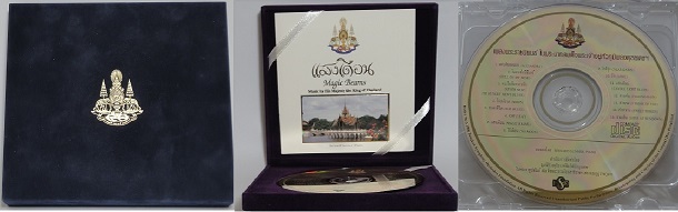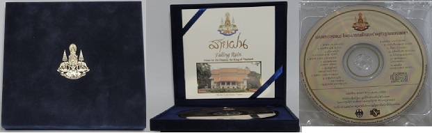 CD เพลงพระราชนิพนธ์แผ่นทอง จัดทำขึ้นเนื่องในวโรกาสการครองราชย์ครบ ๕๐ ปี โดยมูลนิธิวงดุริยางค์ซิมโฟนีกรุงเทพ ในพระราชูปถัมภ์สมเด็จพระบรมโอรสาธิราชฯ สยามมกุฎราชกุมาร บรรจุในกล่องกำมะหยี่สวยหรู น่าสะสม