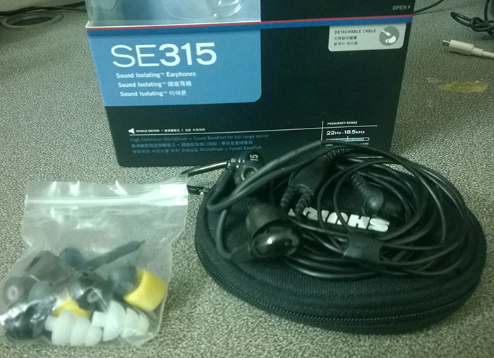 2) Shure SE315 ยังอยู่ในประกัน สภาพดี (ซื้อเมื่อเดือนพฤษจิกายน 2014) พร้อมอุปกรณ์ในกล่องครบตามรูป ราคา 4200 ส่ง EMS ฟรี