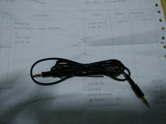 และไปสั่งอะไหล่สายหูฟังจาก MI-Engineering มาสำรองไว้ (ไม่ได้ใช้งาน ราคา 500 บาท)