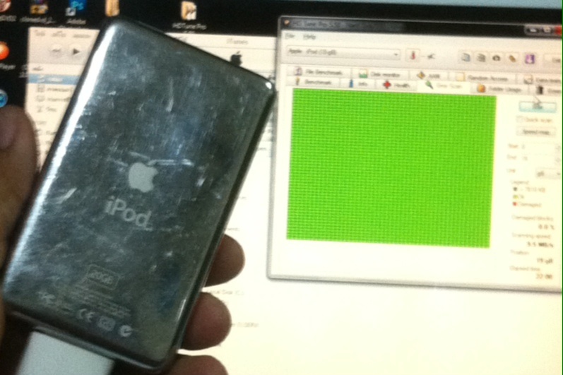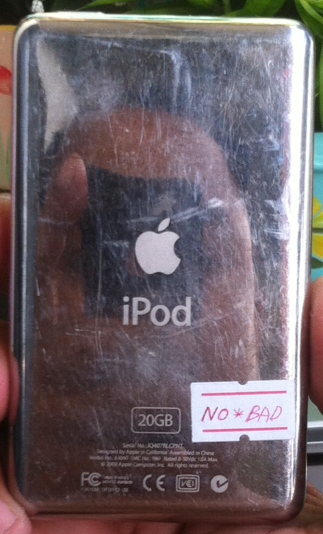 2. iPod gen3 20gb มีรอยการใช้งานทั่วๆไป ไม่น่าเกลียด HDD ไม่แบด (ตั้งแต่ตัวนี้ ผมจะสแกนเองทุกตัว รวมถึงiPod ตัวต่อๆไปด้วย กันพลาดครับ) แบตอึด เกิน10ชม. มีเฉพาะตัวเครื่อง ขาย 1,800 รวมส่ง ถ้าจะเอาชุดชาร์จไฟวาย ผมหาให้ได้ ราคาคุยกันหลังไมล์ครับ