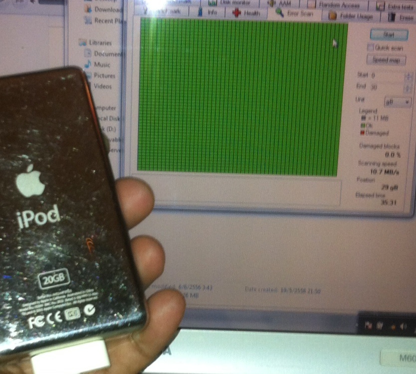 ตัวนี้ ระบุไว้20gb (เลขซีรี่ย์ฝาหลังตรง) แต่ตอนสแกน ระบุว่า 30gbครับ (ถือว่าแถมไป 10gb ละกัน)