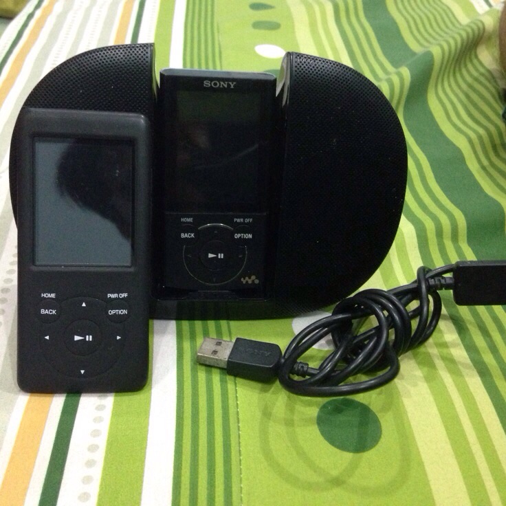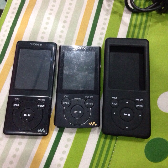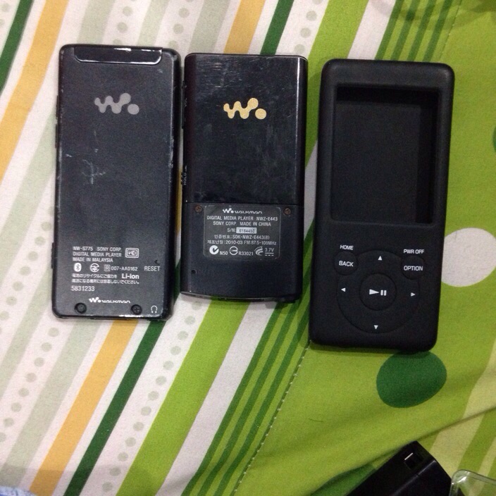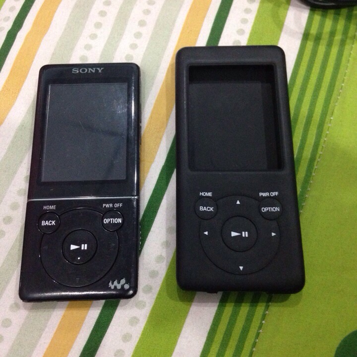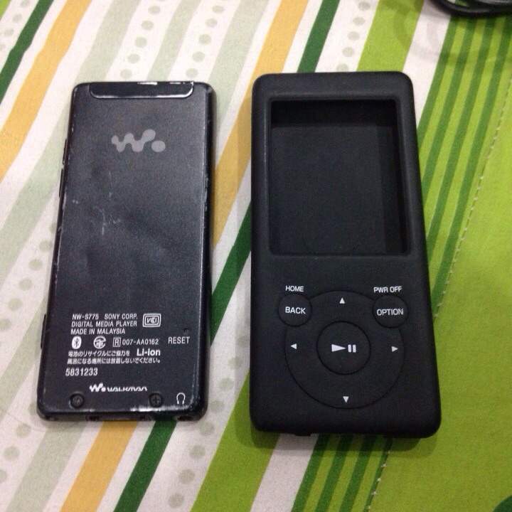เครื่องที่1 sony nw-s775 16gb แบตอึด เครื่องญี่ปุ่นเมนูญี่ปุ่นโชว์เพลงภาษาไทย มีรอยด้านหลังตามรูปปุ่มล็อกต้องออกแรงกดหน่อย นอกนั้นใช้งานได้ปกติครับเสียงดีมากๆ มีเคสซิลิโคลนสีดำใส่แล้วสวยให้1ชิ้นครับ
