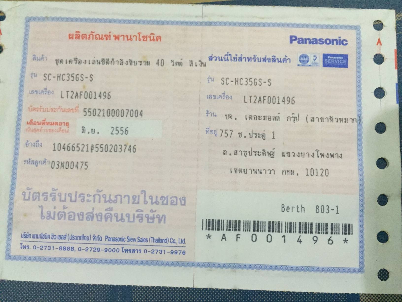 อายุของสินค้า : 2 ปี พอดีครับ