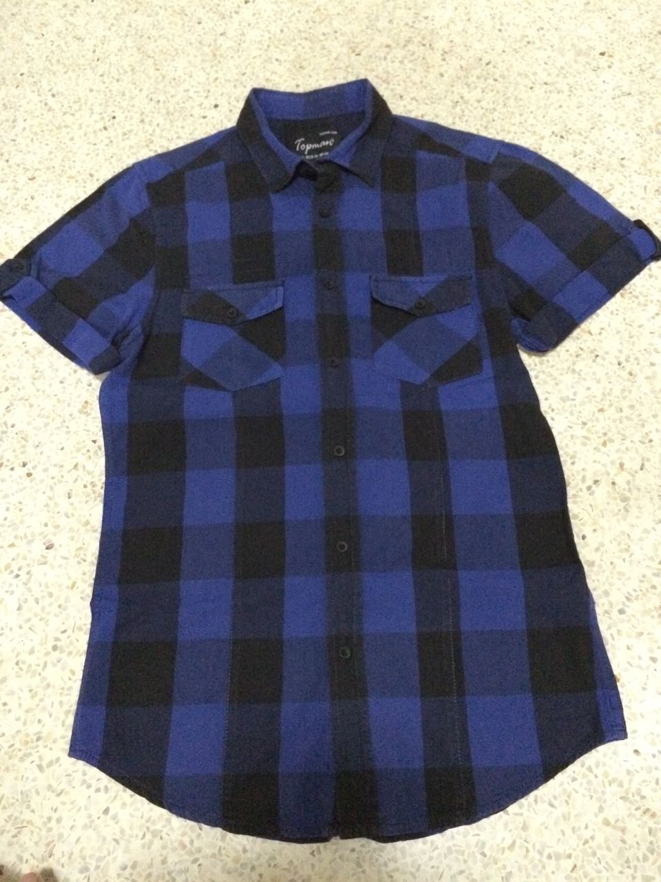 3. เสื้อเชิ้ต Topman เเขนสั้นลายสก็อต สีน้ำเงิน-ดำ Size S สภาพดีครับ ไม่ได้ใส่มานานมากเเล้วครับ ราคา 500 บาท