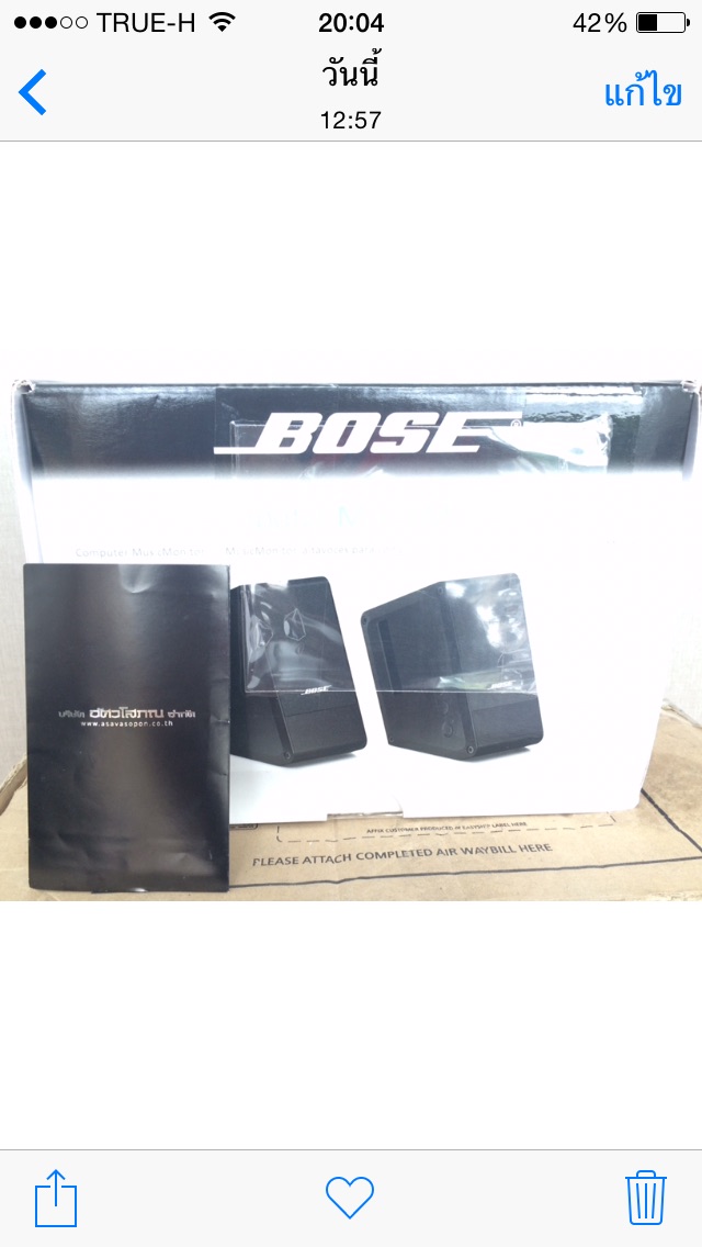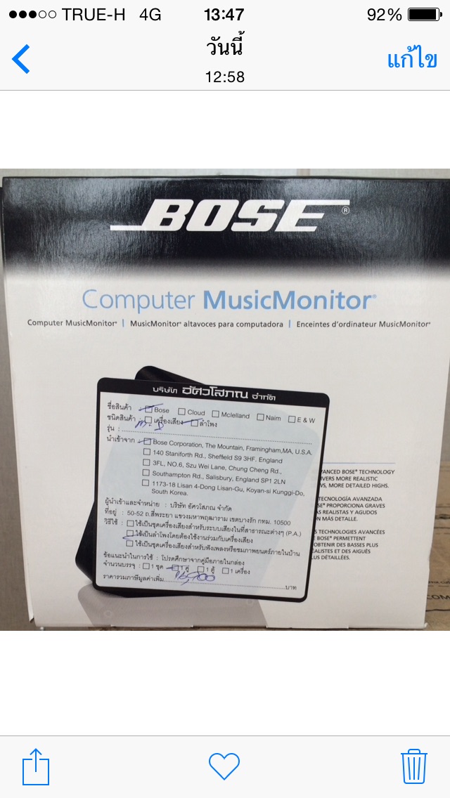 ขาย bose m2เครื่องศูนย์ไทยพร้อมใบประกันและใบเสร็จร้านศูนย์ อัศวโสภณ คับ ซื้อมายังไม่ถึงอาทิตย์เลยคับ มีใบเสร็จวันซื้อคับ เหตุผลที่ขายเพราะไม่มีเวลาฟังคับ สภาพใหม่100% เสียงดีมากคับ ขายอยู่ที่11000บาทคับ. สนใจติดต่อมาทาง line appleartter หรือโทร 096-881-5989