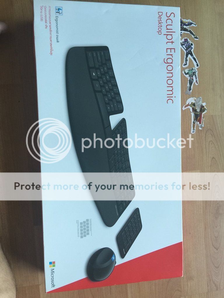Micosoft Sculpt Ergonomic Desktop สภาพดี มีรอยขนแมวและฝุ่นครับ ตัวหนังสือยังคมชัด ที่แผ่นรองมือมีคราบฝุ่นและรอยเปื้อนนิดหน่อย ตีไปสภาพ 90% ประกัน SIS ครับ ประกันถึง 12/2016