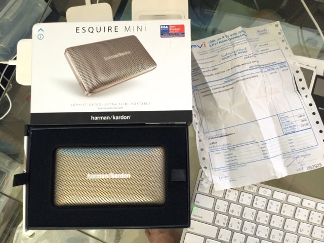 Sale harman/kardon esquire mini สีทอง สภาพเหมือนใหม่แกะกล่อง การใช้งานยไม่ถึง 5ครั้งครับ เหลือประกันเกือปี อุปกรณ์ใบเสร็จครบจ้า ราคา 4900 บาท 0840172720 คุณ ณัฐ