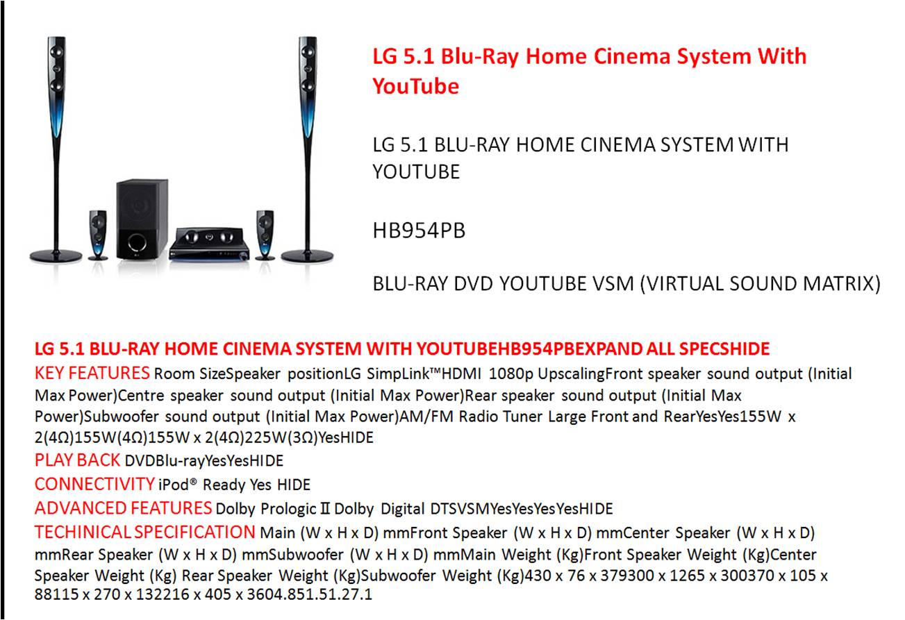 ขาย LG 5.1 Blu-Ray Home Cinema System With YouTube