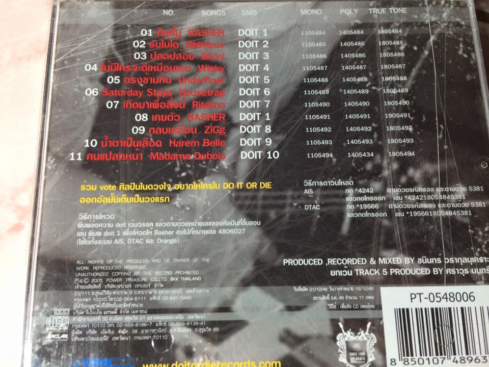 อัลบั้ม DO IT OR DIE งานเพลงจากค่ายมิวสิคบั๊กส์ มีนักร้องดังหลายคนเช่น วง BASHER / Oblivious / Bikini เป็นต้น ขาย 150 บาท