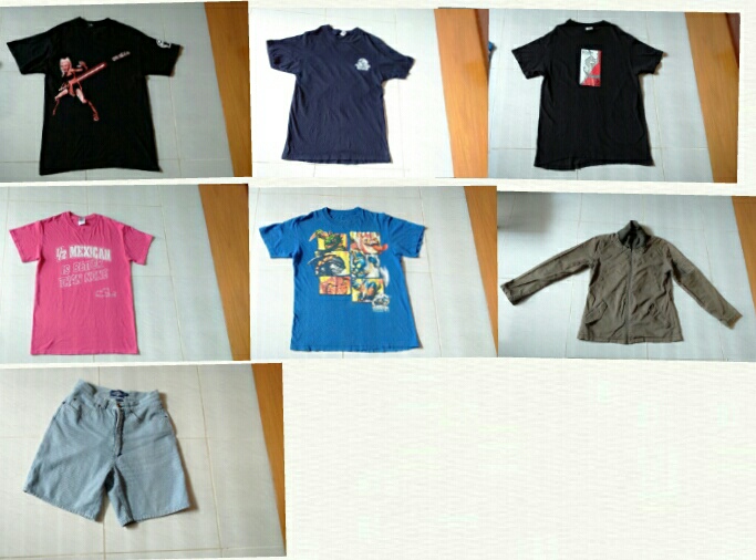 1.เสื้อคอกลมประมาณsize M แขนยาวประมาณsize L กางเกงเอวประมาณ29" หมดนี้200บาทรวมส่ง