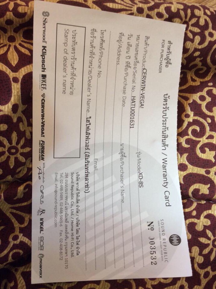 อุปกรณ์ครบกล่อง ใช้งานปกติ ประกันถึง มีนาคม 2559 (ซื้อจากร้าน HiFi lover)