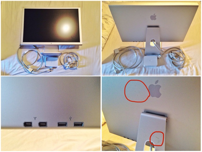 ขาย Apple Cinema Display monitor ขนาด 20 นิ้ว สภาพดีใช้งานได้ครบทุกฟั่งชั่น ไม่มีกล่องและคู่มือ อุปกรณ์ครบ ต่อได้ PC&Mac ข้างหลังมีรอยจากติดสก็อตเทปแล้วดึงออกสองจุดที่วงไว้