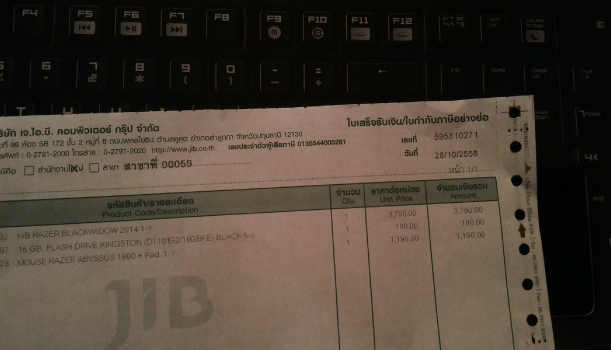 ซื้อมาจากร้าน JIB เมื่อวันที่ 28/10/58 ของสภาพลองใช้วันเดียว มีประกัน1ปี สาเหตุขายซื้อมาใช้ไม่ถนัดเพราะไม่มีภาษาไทยผมต้องพิมพ์งานบ่อยเลยขอปล่อยต่อดีกว่า
