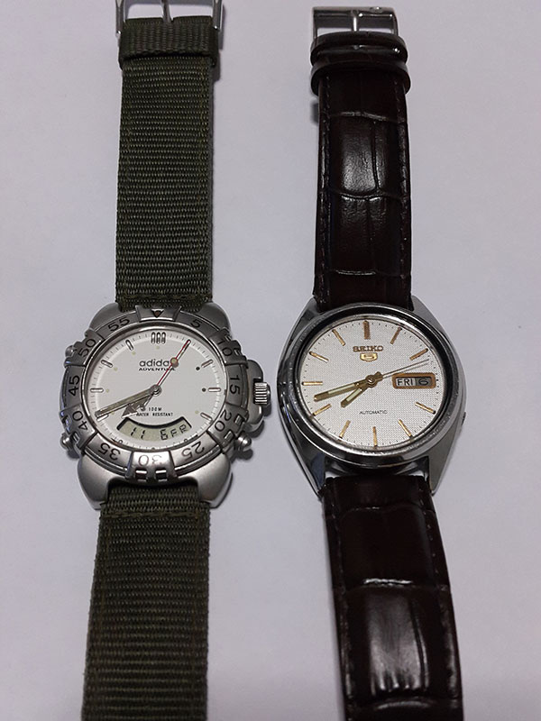 ขอขายนาฬิกาสองเรือนครับ เรือนแรกเป็นของยี่ห้อ adidas ตัวเรือนสวยแนวสปอร์ตลุยๆหน่อย สายเป็นผ้าสีเขียวครับ อีกเรือนเป็นยี่ห้อ seiko เป็นแบบออโตเมติคครับ สายเป็นหนังสีน้ำตาลเข้ม สวยแนววินเทจ คลาสสิค ขอลงขายเรือนละ 1500 บาท สนใจติดต่อที่โทร 0891146289 ขอบคุณครับ