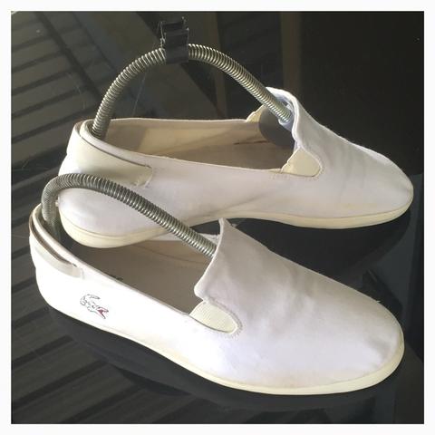 รองเท้า Lacoste Slipon สีขาว สภาพ 85 % Size Euro 41 UK 7.5 US 8.5 วัดพื้นด้านในยาว 26