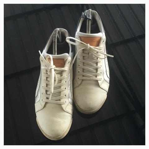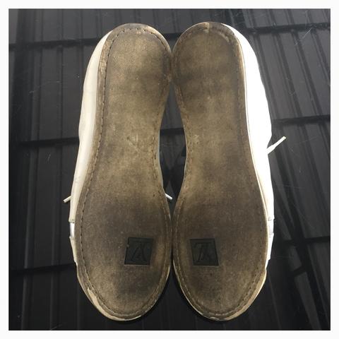 ขายรองเท้า louis vuitton (LV) หนังสีขาวคลิปเงินขอบน้ำเงิน Size 6.5 ความยาวประมาณ 28 cm พื้นเต็มยังใช้ได้อีกนาน