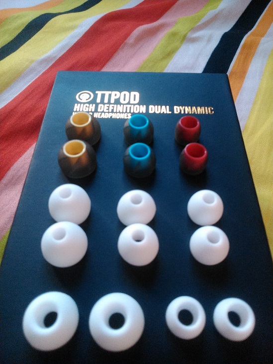 ของในกล่องมีครบทุกอย่างครับ จุกหูฟัง3แบบ แบบละ3ไซท์ กิปหนีบสายกับเสื้อ ซองใส่หูฟัง