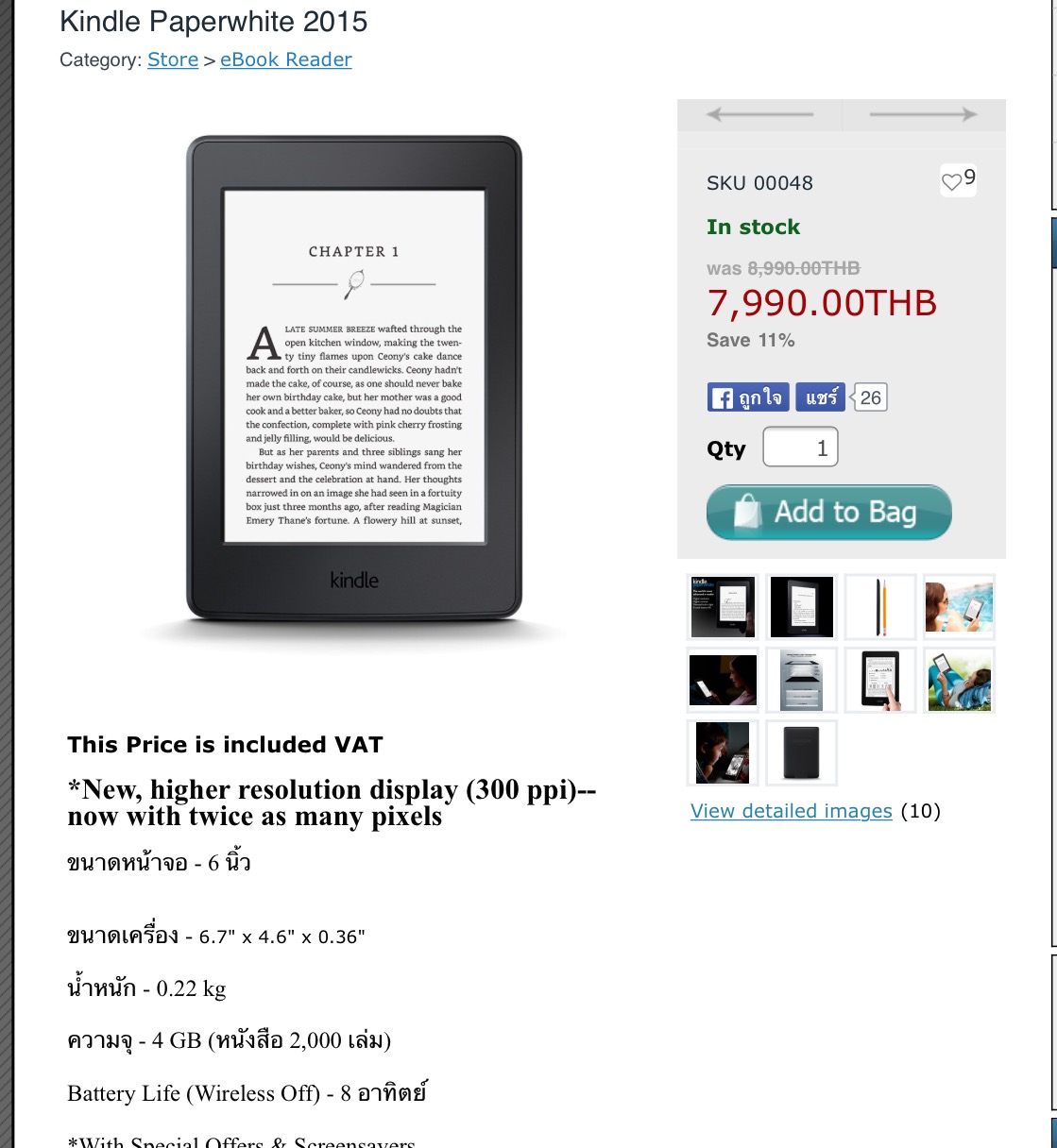 สภาพใหม่มาก เจ้าของเป็นหมอมีซื้อหนังสืออยู่ในเครื่องหลายเล่มแต่ใช้ครั้งสองครั้งก็ตั้งไว้เฉยๆ ตัวเครื่องเป็นรุ่นใหม่สุดสามารถเปิดไฟอ่านกลางคืนได้เป็นไฟระบบปล่อยแสงลงที่หมึกภาพไม่ทำลายตา เครื่องต่อไวไฟได้