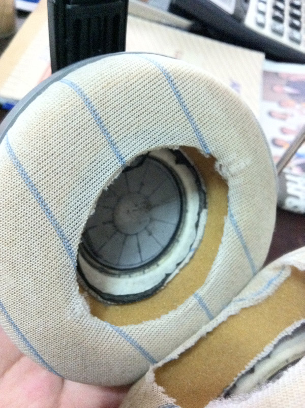 รูปที่4 ฟองน้ำหุ้มมันขาดไปตั้งแต่ตอนซื้อมาแล้วแหละครับ แต่ไม่ได้เป็นอุปสรรคต่อเสียงและการฟังเลย