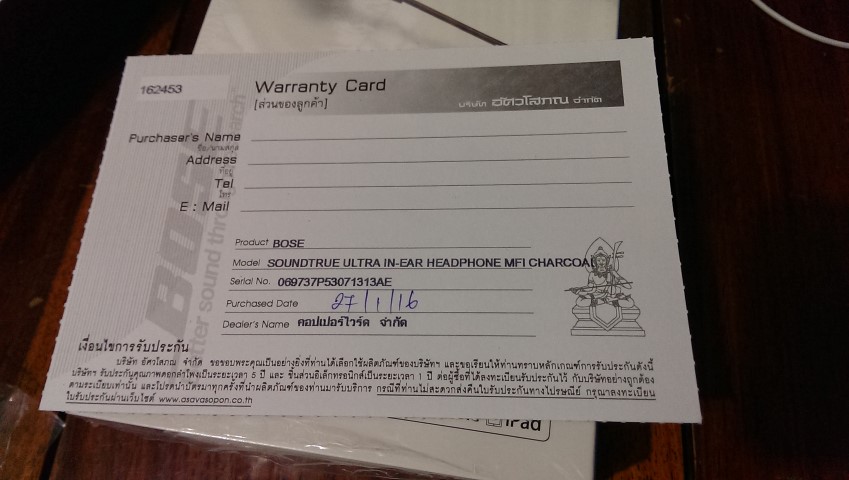 ประกัน : ใบเสร็จร้านที่ซื้อและใบรับประกันของอัศวโสภณ