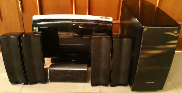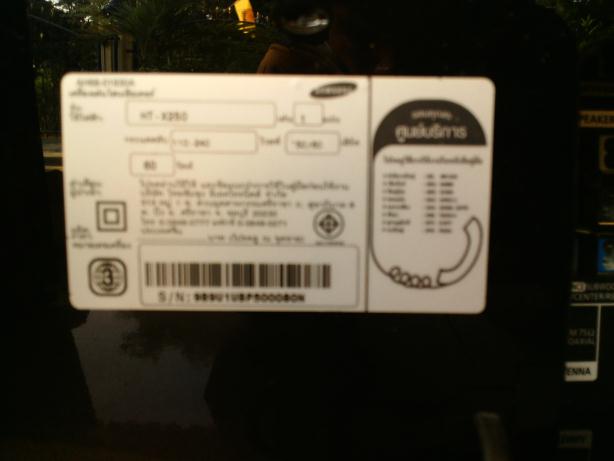 ชุดโฮมเธียเตอร์5.1 จาก Sumsung Model No. HTX-250 เป็นชุดโฮมเธียเตอร์ที่ออกแบบมาให้เป็น 5.1 โดยเฉพาะซึ่งประกอบด้วยลำโพงคู่หน้า 2 ตัว ลำโพงคู่หลัง 2 ตัว และ ลำโพงเซ็นเตอร์ 1 ตัว มิติตู้กว้าง 9 ซม. ยาว 15 ซม. สูง 28 ซม. ส่วนลำโพง Subwoofer เป็นแบบ Passive ที่อาศัยกำลังขับจาก AVR Sumsung นั่นเอง ให้พลังเสียบสั่นสะเทือนสมจริง มิติลำโพงกว้าง 16 ซม. ยาว 40 ซม. สูง 38 ซม. ดอกวูฟเฟอร์ 9 นิ้ว โชว์ดอกลำโพงอยู่ด้านข้างและยังมีท่อเบสยิงใส่ผนังด้านหลังเพื่อให้การชมภาพยนตร์มันสะใจ สมจริง สำหรับตัวเครื่อง AVR ของ Sumsung ที่ใช้ขับนั้นวางแนวตั้งใช้ไฟ 220 โวลต์ ที่ 60 Hz มีช่องสัญญาณภาพและเสียงได้แก่ช่อง HDMI , Radio attenna , Component และ AV และยังมีช่องดิจิตอลขาเข้าด้วยแบบ Optical สามารถเล่นแผ่น DVD , USB , ฟัง FM/Am ได้ครับ สำหรับคอหนัง คอคอนเสิร์ต หรือจะใช้ฟังเพลงก็แจ่มมากเพราะเครื่องนี้มีระบบ Dolby Prologic ช่วยสร้างเวทีเสียงให้โอบล้อมเหมือนอยู่ในโรงหนัง หรือ concert ใหญ่ๆ หรือจะใช้ฟังเพลงสบายๆ ในช่วงเวลาทำงานหรือพักผ่อนในวันหยุดก็ตาม กำลังขับโดยรวม 60 Watt (RMS) กำลังเท่านี้แต่ฟังจริงบ้านสั่นสะเทือนกระจกแตกได้นะครับ ผลิตในเกาหลี นำเข้ามาขายโดย Sumsung Thailand ไม่มีรีโมทแต่กดได้ที่ตัวเครื่องเลยครับใช้ได้ทุกปุ่มทุกฟังก์ชั่น ถูกๆ ดีๆ ครบๆ หาได้ยากครับจัดไป