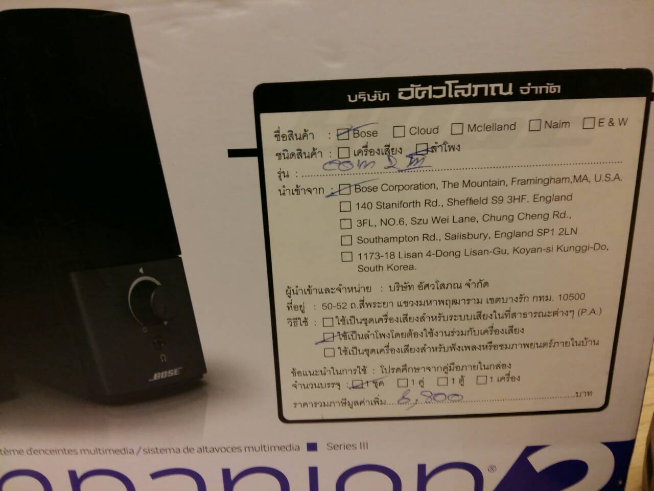 "ขาย bose companion 2 III ราคา 4300 บาท สภาพใหม่มาก"