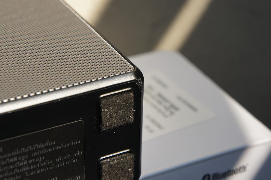 ยางรองด้านล่างหลุดหาย เลยใช้สักหลาดกันรอยมาแปะแทน ประกันยังมีอยู่ แต่ถ้าเข้าศูนย์ แล้วเห็นรอยที่ตัวลำโพง ศูนย์คงไม่ให้เครมแน่