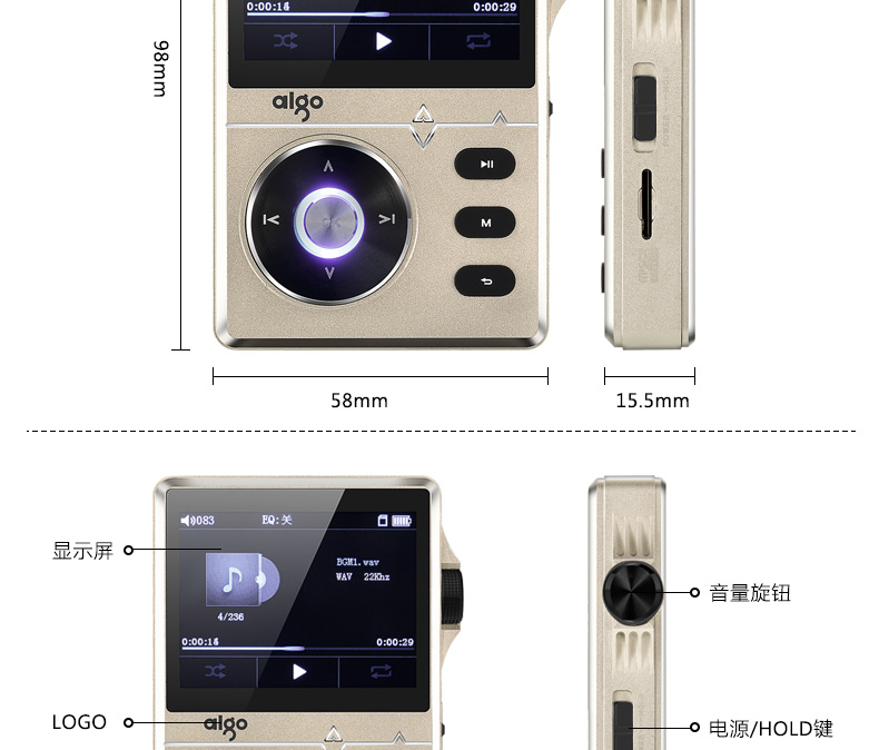 "ขายเครื่องเล่นเพลงของ aigo MP3-108 สภาพใหม่ สีทอง"