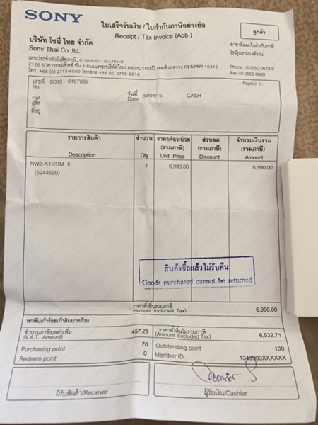 ซื้อเมื่อ 30/01/15 ใช้งานปกติ ใช้งานน้อยมาก แล้วเก็บลงกล่อง