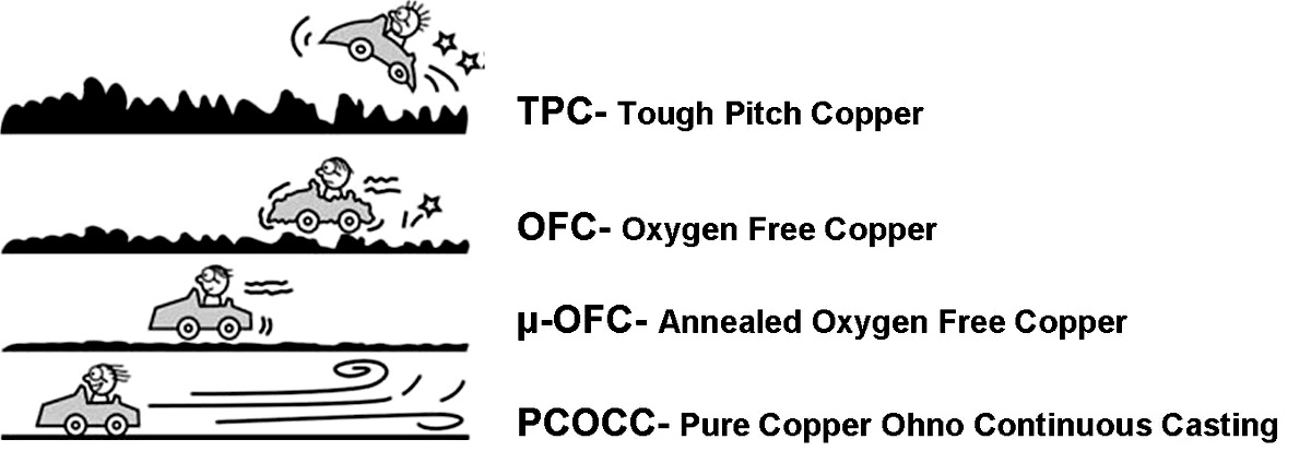 ปัจจุบันถือว่าสุดยอดทางเทคนิคการผลิตทองแดง เพื่อเพิ่มขีดความสามารถในการถ่ายนำสัญญาณ พัฒนาขึ้นโดยศาสตราจารย์ OHNO แห่ง Chiba Institute of Technoloty เริ่มต้นจากการหลอมทองแดงให้เกี่ยวเนื่องกันแบบโมด์ความร้อน เพื่อทำให้ทองแดงเหลือเพียงผลึกเดี่ยว(Monocrystallization) ซึ่งการเกิดเป็นผลึกเดี่ยวนี้เอง จึงไม่มีทั้งออกซิเจนและไฮโดรเจน และยังช่วยลดอัตราส่วนของแรงดึงต่อแรงดันลงได้มากอีกด้วย จึงทำให้มีค่าความพลิกผันมากกว่าค่า Q นอกจากนั้น PCOCC ยังมีแรงต้านทานต่อสนามแม่เหล็ก อันเป็นปัจจัยสำคัญที่ก่อให้เกิดการสั่นสะเทือนภายในตัวนำ สัญญาณต่างๆที่ผ่านเข้ามาจึงไม่มีการบิดเบือน ปัจจุบันด้วยเทคนิคของ PCOCC นี้ ทำให้มีค่าความบริสุทธิ์ของทองแดงมากถึง 99,99999% เลยทีเดียว มีชื่อเรียกอีกอย่างว่าสาย 7N "