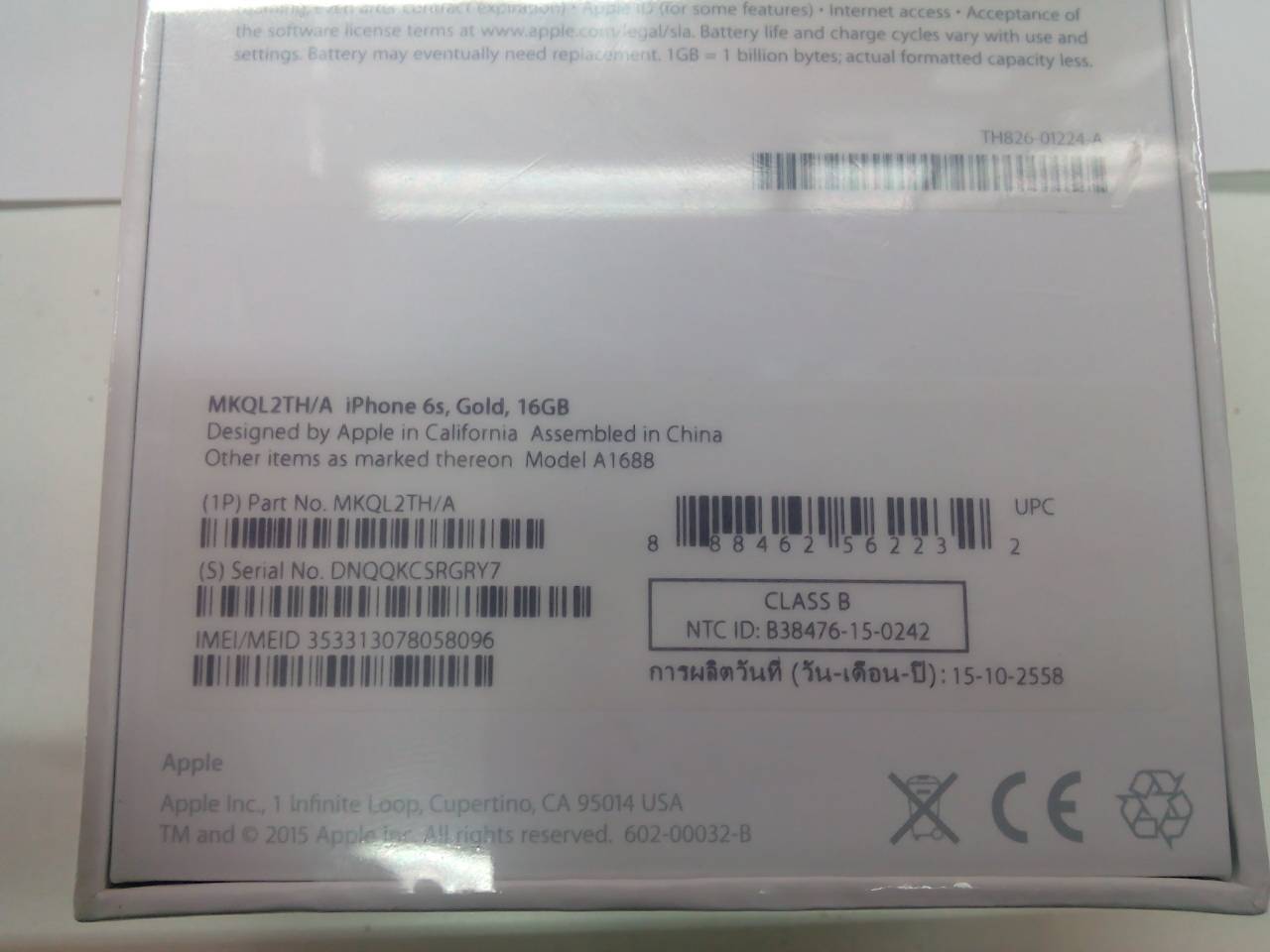 IPhone 6s สีทอง 16 GB เครื่องศูนย์ ais ไม่แกะ ในราคา 24000 บาท