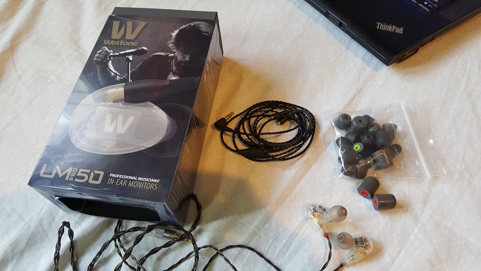 1 Um Pro 50 สภาพดี อุปกรณ์ เกือบครบ หายไปคือ Foam สีน้ำเงิน 1 คู่ แต่แถม spinfit cp 800 size L ไปแทน รับรองว่าเสียงดีกว่า tip ตัวอื่นๆ ขอขาย 12000 บาท สายสภาพดีแทบไม่ได้ใช้ เพราะใช้สายอีกเส้นแทน (สายอีกเส้นในรูปถ่ายไม่อยู่ในรายการขายนี้นะครับ)