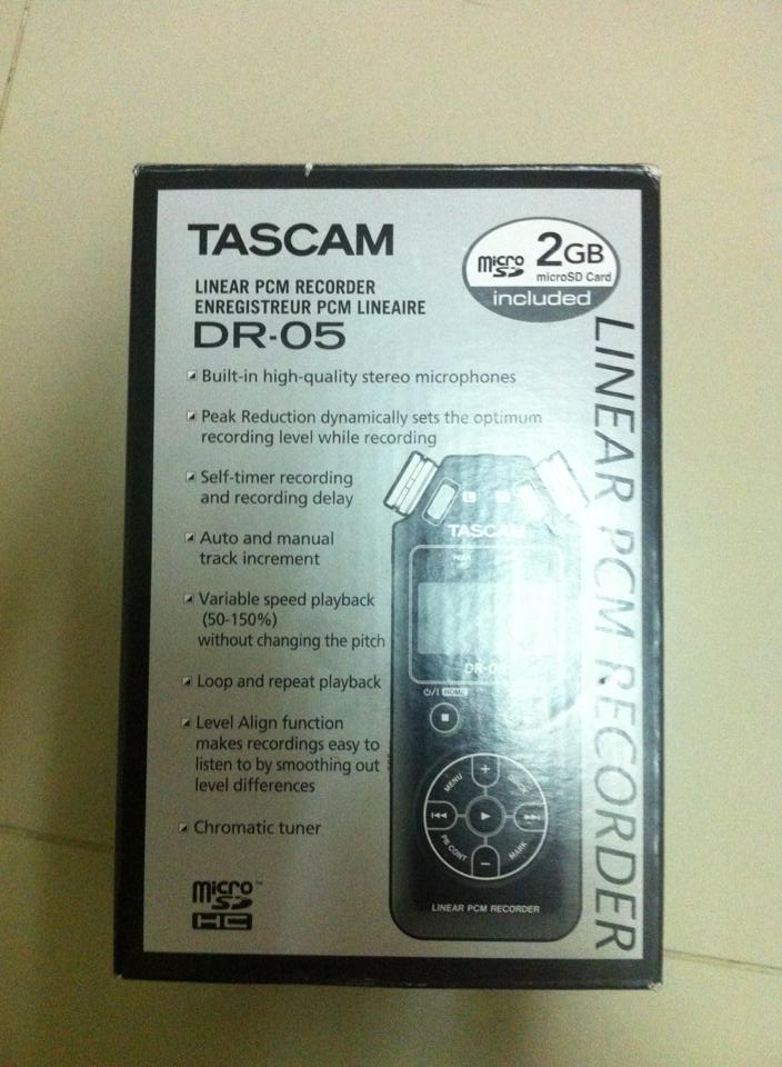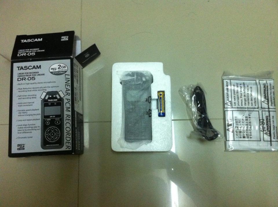 อุปกรณ์ในกล่อง: Tascam DR-05 + สาย Micro USB + คู่มือ + ถ่าน 2 ก้อน + Micro SD 2GB + Micro SDHC 32GB