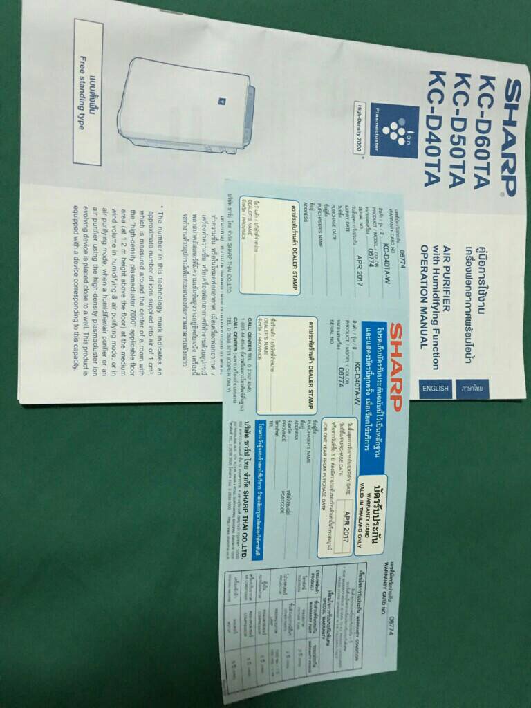 เครื่องฟอกอากาศ SHARP Plasmacluster รุ่น KC-D40TA-W
