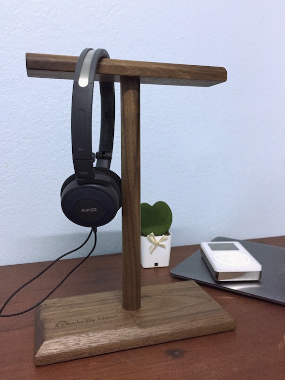 แบบที่ 3 เป็นไม้สีเข้ม งานสวยมาก ขัดผิวอย่างดี รูปตัว T แขวนหูฟังได้ 2 อันแบบสบายๆ