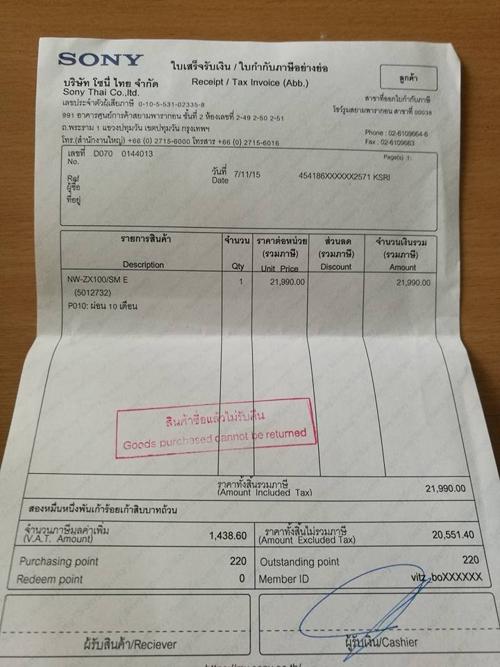 sony ZX100 ซื้อจาก sony shop paragon 11/58 เหลือประกัน 2 เดือน