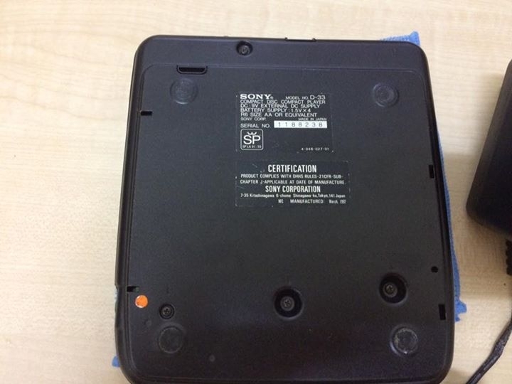 2. Sony D-33 สภาพจัดว่าสมบูรณ์มากๆ อ่านแท้ได้อย่างเดียว เสียง Analog ใส่ถ่าน1.5vสี่ก้อนเล่นได้. มีอแดปเตอร์ของsony 9vลบในให้. หายากสุดๆ. มีตำหนิที่ช่อง3.5mm ขยับมีเสียงซ่าๆนิดหน่อย. แต่ถ้าขยับตรงแล้วปกติ ให้ช่างจันทำความสะอาดช่องให้แล้ว