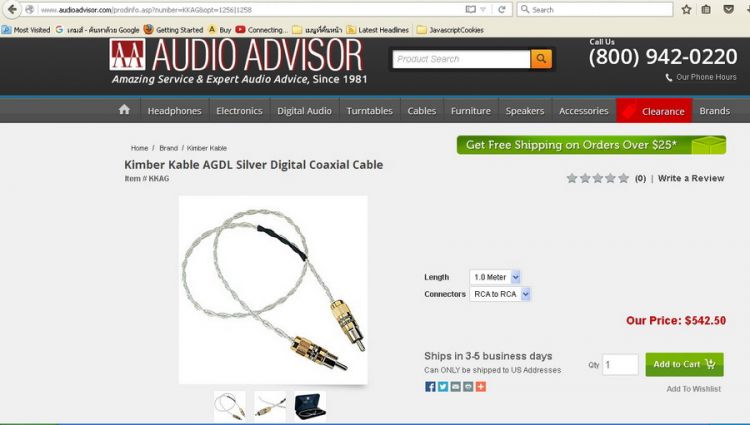 "ขาย สายดิจิตอล Kimber Kable ADGL 75 ohm"