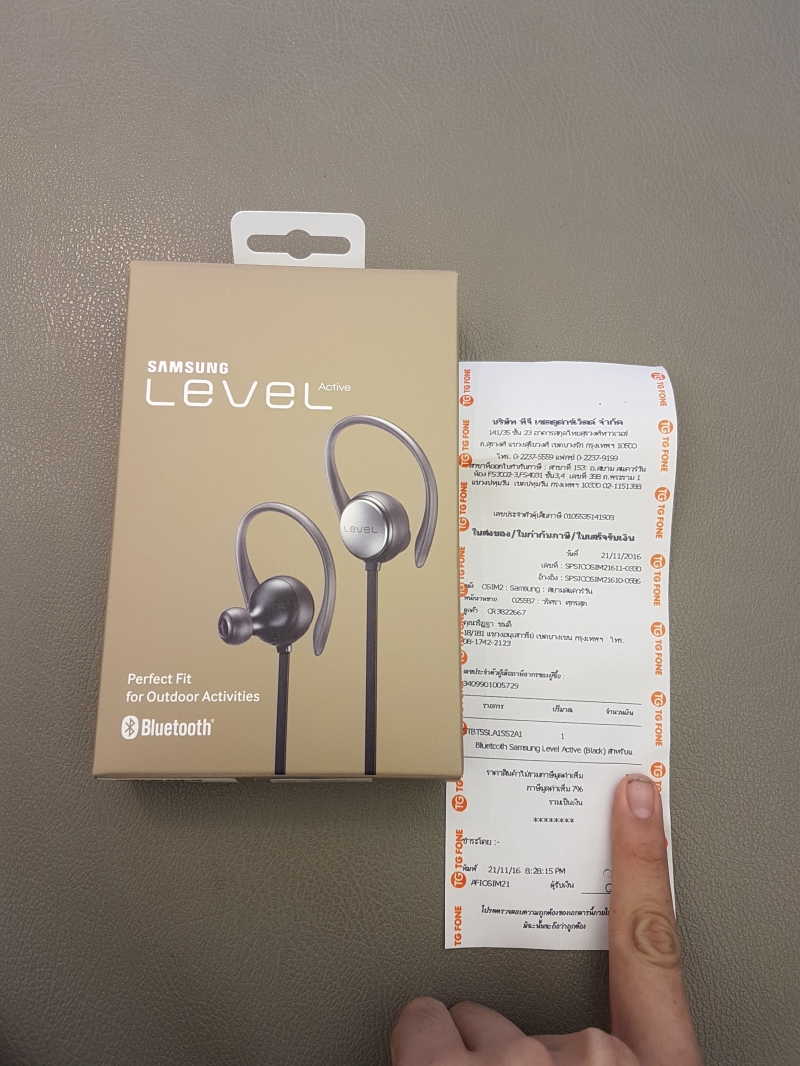 ขาย หูฟัง SAMSUNG LEVEL Active มือหนึ่ง ยังไม่แกะ มีใบเสร็จให้ เพื่อนฝากขายครับ ขายถูกๆเลย