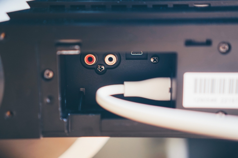 ข้างหลังมี AUX IN (ต่อกับ Airport Express หรือว่าพวก Bluetooth Receiver ก็ได้) กับ Mini USB port เป็น Digital Audio In จาก PC ก็ได้