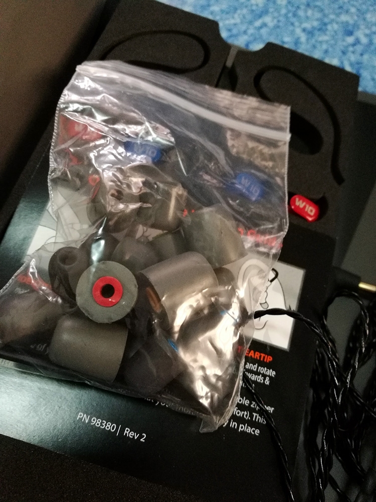 อุปกรณ์ครบกล่อง[ตัวนี้ให้สายสองเส้นครับ] + แถมจุก spinfit M ให้หนึ่งคู่ครับ