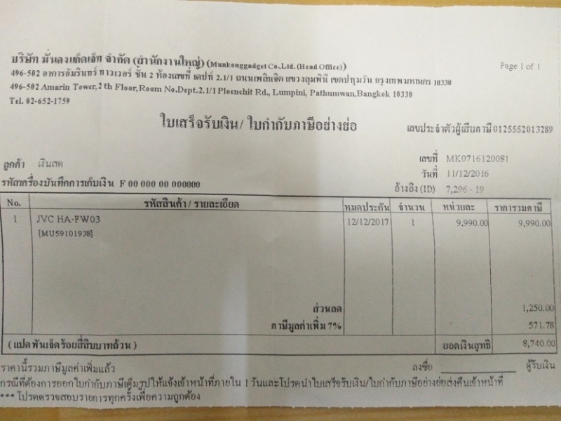 ซื้อเมื่อ 11/12/2559 ประกันมั่นคงครับ