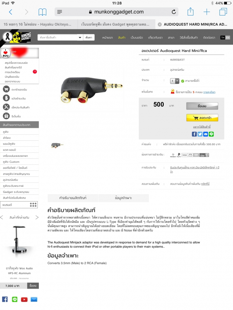 "ขายหัวแหลง Audioquest Hard mini 3.5 to Rca ครับ"